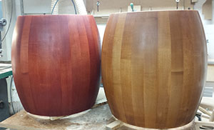 Bevor wir die Felle das erste Mal aufziehen, werden sie zu 'T-Skins' (bzw. 'Taiko-Skins') weiterverarbeitet.