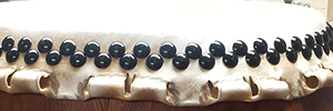 passend zur Größe der Trommel. Zunächst haben die rohen Felle eine Farbe zwischen Honig und Brauntönen.